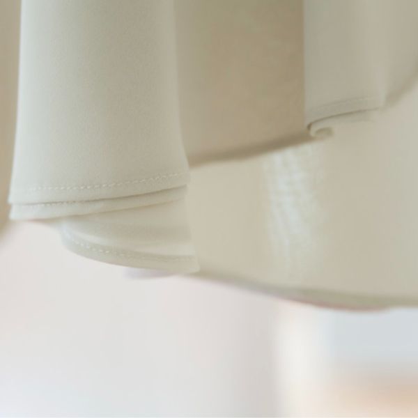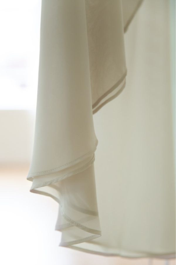 軽やかなシフォン素材が動きに合わせて美しく揺れ、