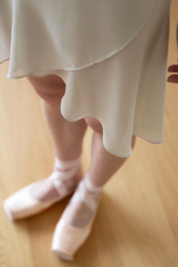 大人のバレエコーデに華やかさをプラスするシフォンラップスカート。