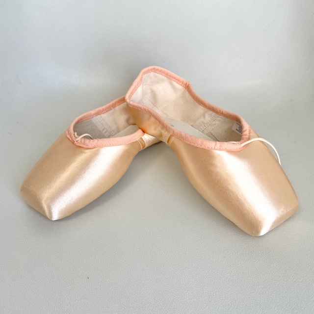 ボックスが硬すぎないため、ドゥミ(半分つま先を折る動き)を通しやすく、足の甲のラインを最大限に美しく見せることができます。