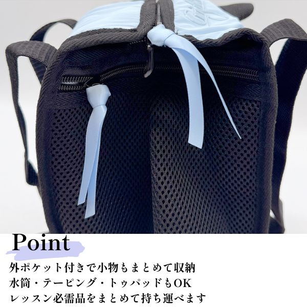 水筒・ペットボトル・テーピング・トゥパッドなど、レッスンに必要なアイテムをまとめて持ち運べます。
