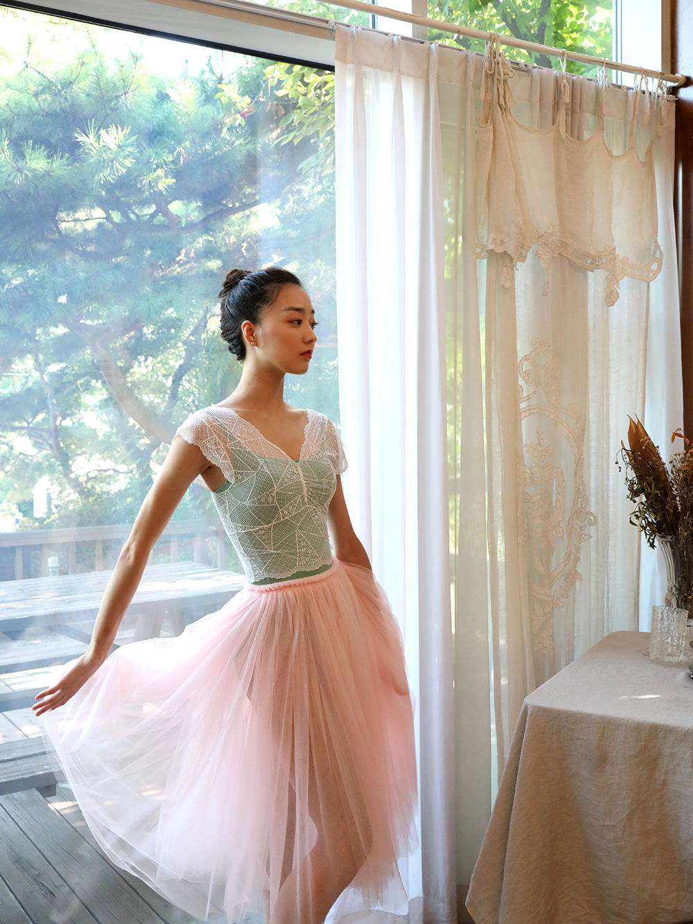 繊細で贅沢な素材をふんだんに使用した韓国ブランドのバレエウエアです。
