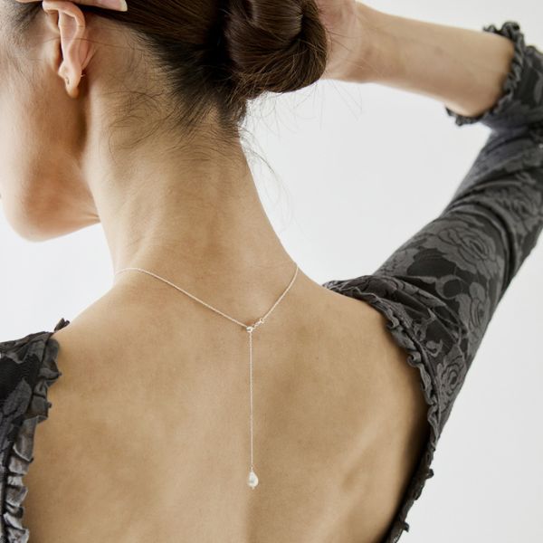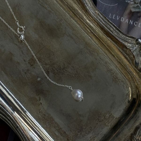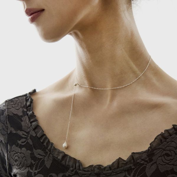 「水の光」という名の通り、カシ真珠の柔らかな輝きが美しく際立つ上品なネックレスです。