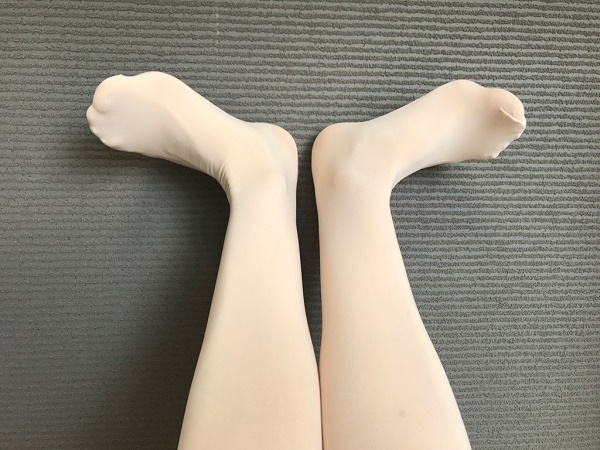 バレエピンク(肌色に近いピンク)で足だけ浮くことはありません。