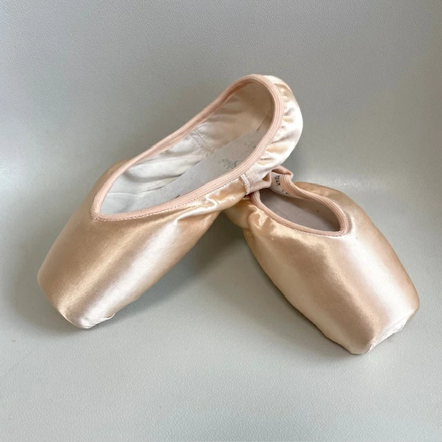 クラウンが高く、プラットフォームが中程度、Vカット、伸縮性のあるバインディング、簡単にドゥミを通せるミラクルペースト(接着剤)を使用。