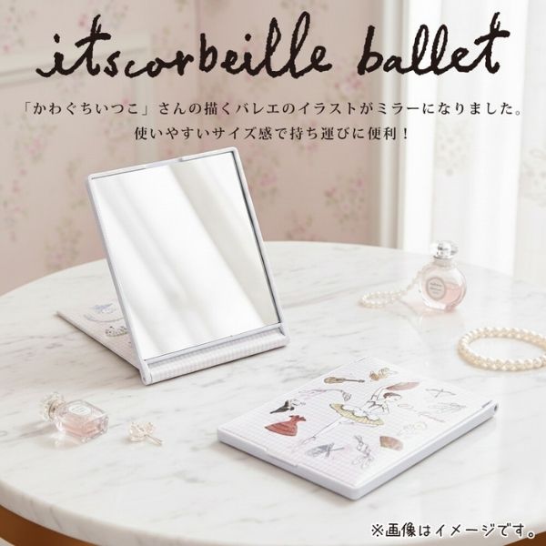 世界中のバレリーナに愛される人気イラストレーター『かわぐちいつこ』さんの繊細なイラストが、持ち運びに便利なミラーになりました。