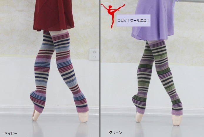 バレエ レッグウォーマー ボーダー柄 (ラビットウール)バレエに大活躍 大人 バレエ用品