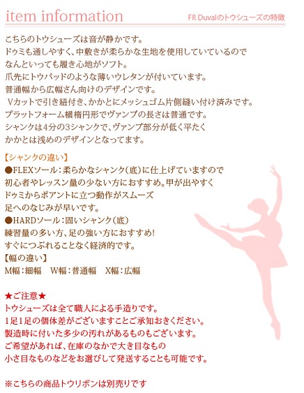 【F.R.Duval】#1.0 トウシューズ:前重心で甲が出ます。音が静かで柔らかなポアントワークが可能【FLEXソール】 【当日発送可能】